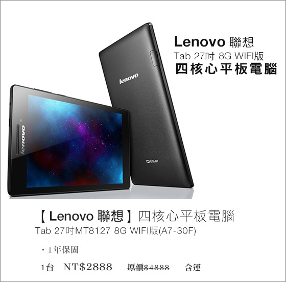 之前Lenovo聯想-Tab 2 7吋MT8127 8G WIFI版(A7-30F)四核心平板電腦" 又剛好在做促銷
