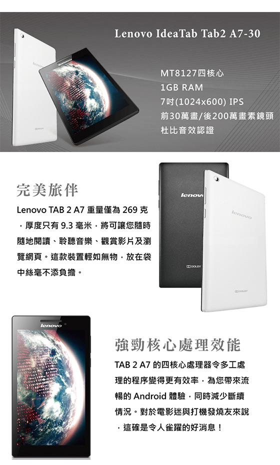 品名:【Lenovo聯想】Tab 2 7吋MT8127 8G WIFI版(A7-30F)四核心平板電腦